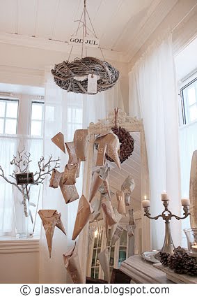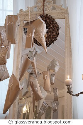 Årets adventskalendere er helt klart de vakreste vi noensinne har hatt! Ingen objektiv uttalelse det da men :)), men det er den vakreste vi har hatt i hus i hvertfall! ;) Jeg var så lei av de vanlige veggkalenderene som vi har hatt i bruk alle adventer siden ungene var bittesmå, du vet slike veggtepper til å knyte gavene fast i, så jeg bestemte meg for at i år skulle vi innføre en helt ny kalender, og helst en som var ny, spennende og vakker på samme tid. -Og hva var vel da mere naturlig for meg som alltid har vært, og fremdeles er, fullstendig kranse-gal, enn å velge en kalenderløsning med kranser!! ;))